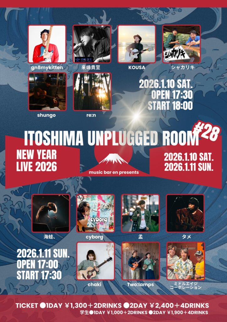 2026年1月10日(土) 糸島Itoshima Unplugged Room vol.28 “ニューイヤーライヴ2026”